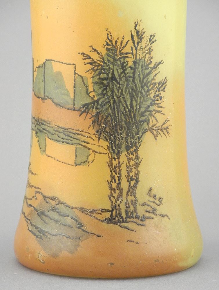 LOT 108 LeGras Orientalist Subject Glass Vase signed Leg., 9"h. Estimate: $50 - $60 Sold For: $25 Auction Date: Tuesday, January 21 2025 at 4:00 PM