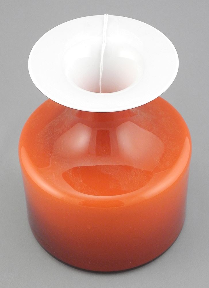 LOT 137 Holmegaard Carnaby Red & White Glass Vase, Design: Per Lutken, 6 7/8". Estimate: $80 - $120 Sold For: $100 Auction Date: Tuesday, January 21 2025 at 4:00 PM