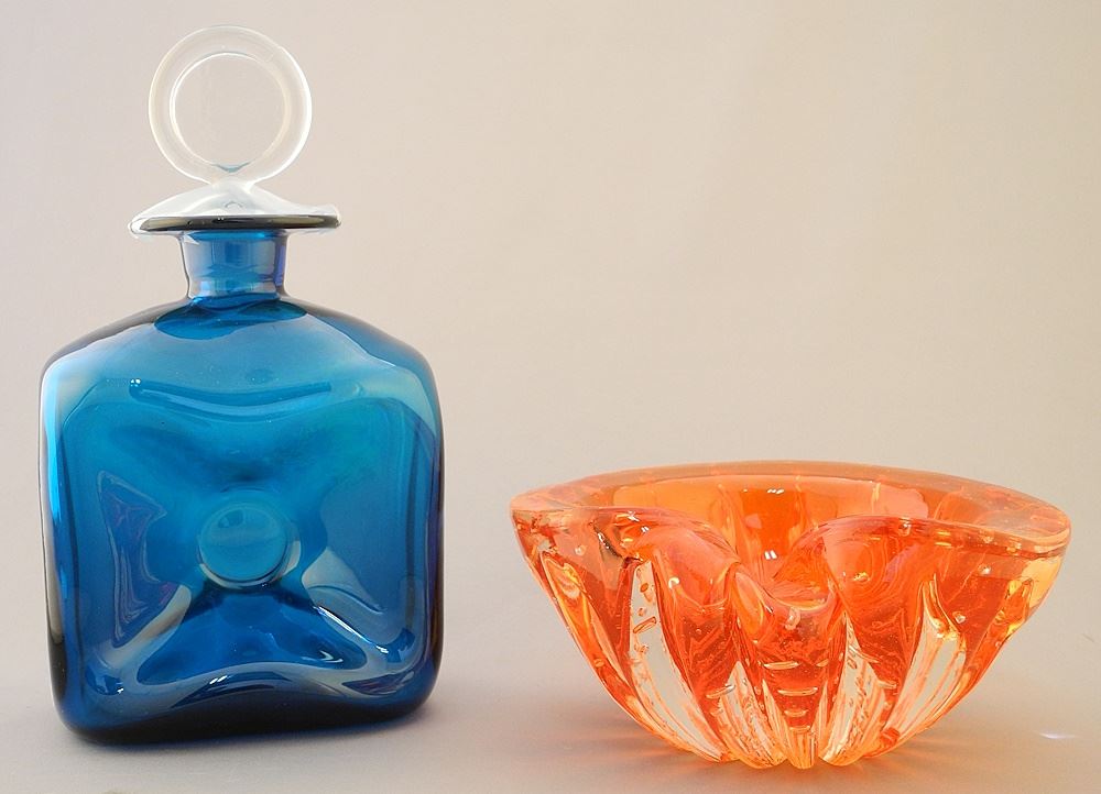 LOT 274 3 Glass Items: Red Murano Flash Glass Bowl / Murano Black Basket Shaped Dish / Blue Decante Estimate: $100 - $150 Sold For: $110 Auction Date: Tuesday, January 21 2025 at 4:00 PM