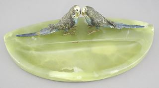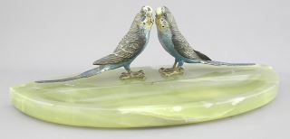 LOT 292 Austrian Cold Painted Bronze Budgies & Onyx, 11 3/4" (chips noted). Estimate: $80 - $100 Sold For: $90 Auction Date: Tuesday, January 21 2025 at 4:00 PM