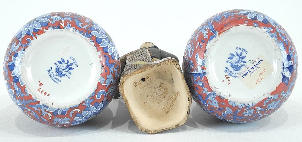 LOT 207 W. German 10 1/4" Pottery Figure, Russian Box & Pair Wood & Sons Vases Estimate: $60 - $90 Sold For: $120 Auction Date: Tuesday, January 21 2025 at 4:00 PM