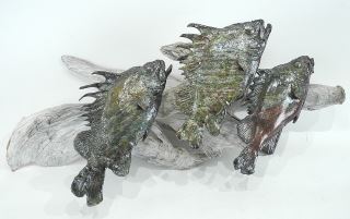 LOT 126 Two Raku Wall Sculptures by Ed Oldfield, 28 1/2" & 18 1/2"L. Estimate: $60 - $100 Sold For: $60 Auction Date: Tuesday, January 21 2025 at 4:00 PM