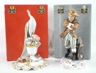 Royal Crown Derby 9 1/2" Peacock & Derby Fisherman with Boxes.