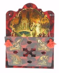 LOT 197 Scarlet Lacquer & Lithographic Decoupage Wall Pocket, 15 3/4". Estimate: $60 - $80 Sold For: $60 Auction Date: Tuesday, January 21 2025 at 4:00 PM