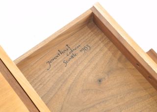 Exotic mixed Wood Slope Top Dish signed Jonathan Cohen Seattle 1983.