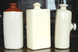 3 Antique Stoneware Foot Warmers, 9 3/4" tallest.