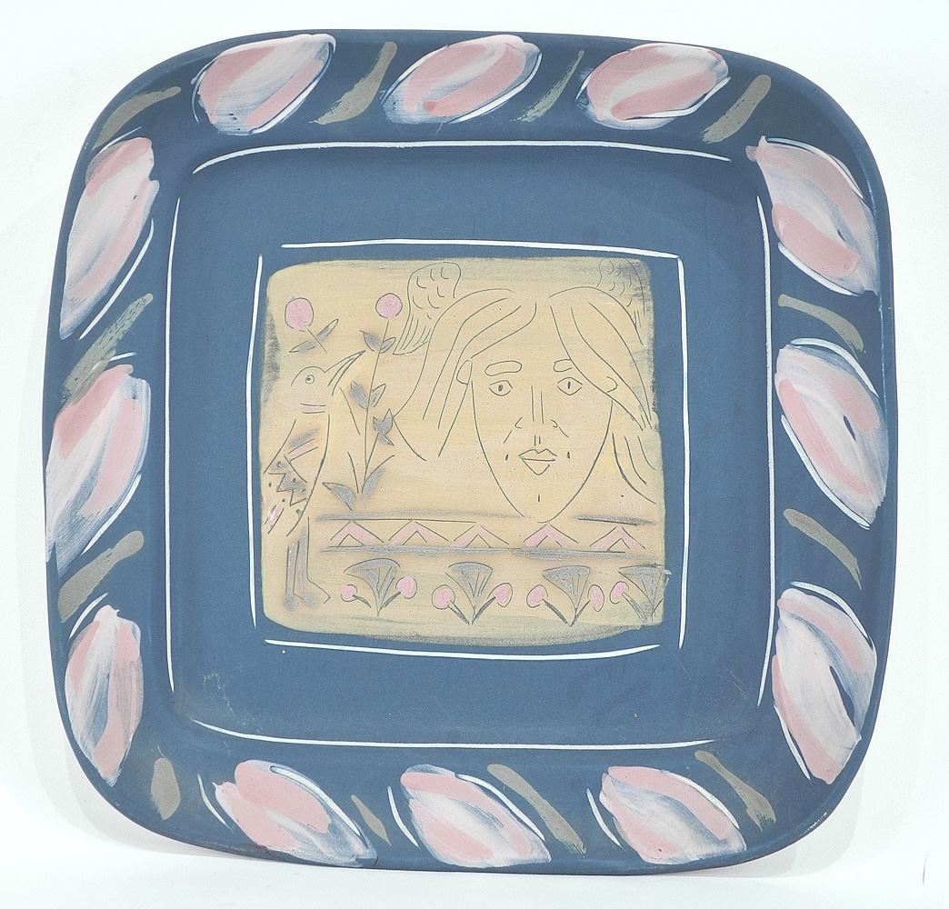 Pottery Dish signed L. Rolland '90, 16 3/4" x 17".