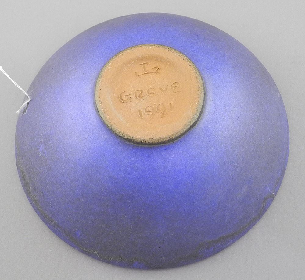 Pottery Bowl Monogrammed JG/Grove/ 1991, 7 7/8" Diameter.
