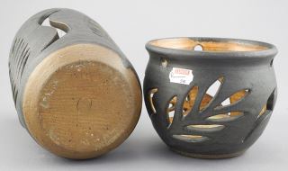 Two Mary Osborn Pottery Items: Candlestick & Candle Holder, 3 3/4 & 6 7/8".
