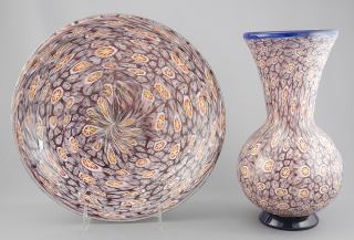 LOT 249 Murano Glass Vase & Dish, Dish signed Cimarosto, 9 1/2"h & 10 3/8" Diameter. Estimate: $60 - $120 Sold For: $130 Auction Date: Tuesday, July 15 2025 at 4:00 PM