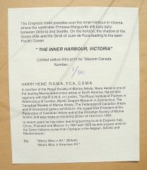 LOT 203 Limited Edition Print signed (Harry) Heine, 20 x 27 1/2", "Inner Harbour Victoria" #1/90. Estimate: $100 - $200 Sold For: $70 Auction Date: Tuesday, July 15 2025 at 4:00 PM