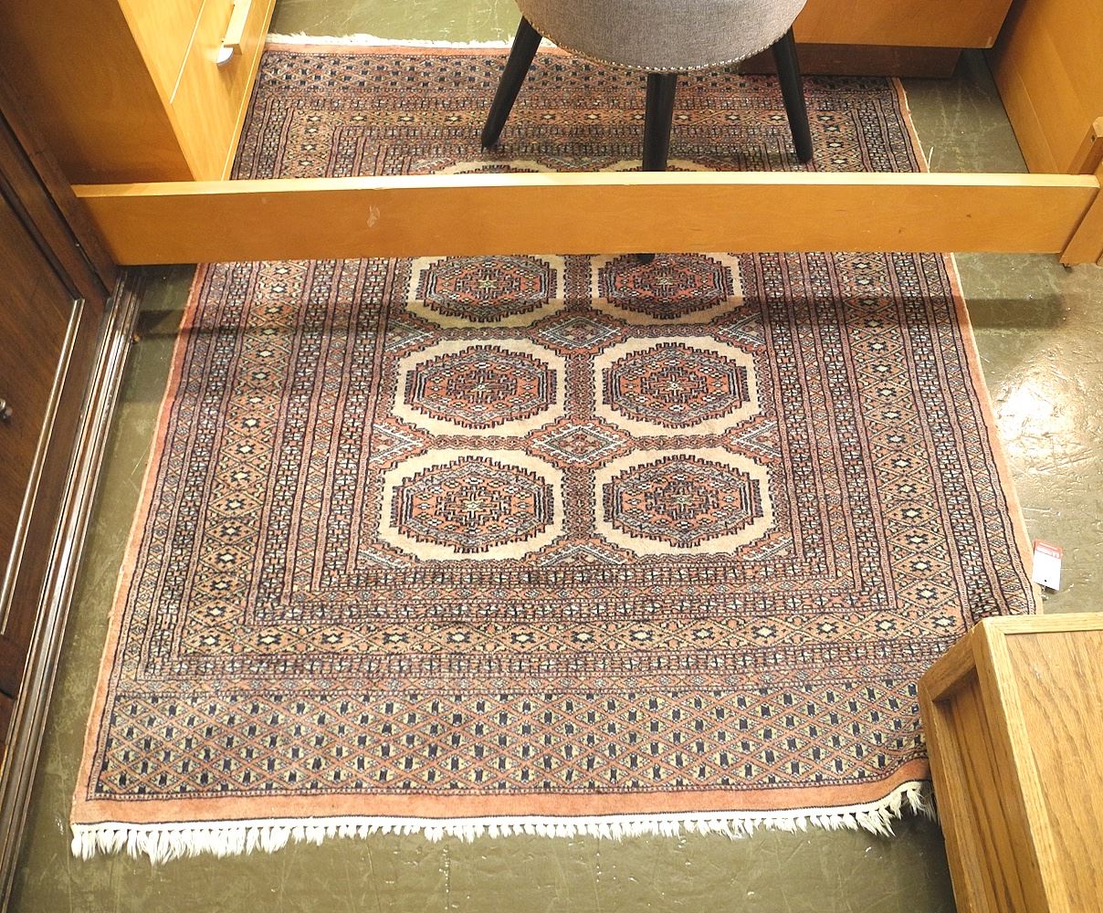 LOT 276 Hand Knotted Bokhara Carpet Approximately 4'1" x 4'10". Estimate: $150 - $300 Sold For: $160 Auction Date: Tuesday, July 15 2025 at 4:00 PM