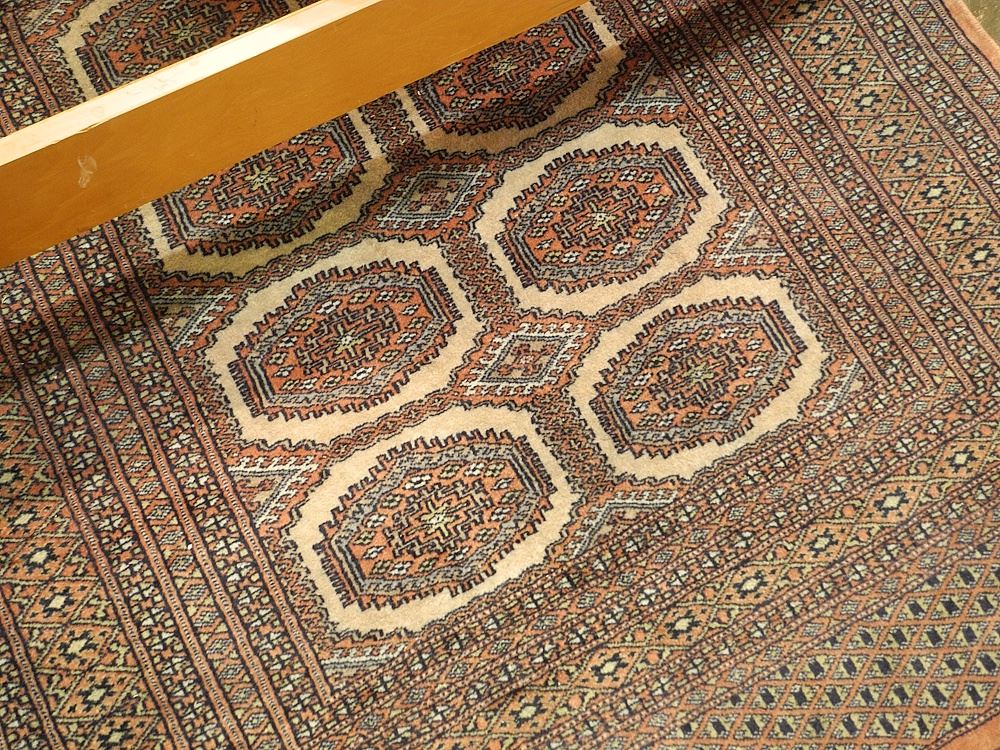 LOT 276 Hand Knotted Bokhara Carpet Approximately 4'1" x 4'10". Estimate: $150 - $300 Sold For: $160 Auction Date: Tuesday, July 15 2025 at 4:00 PM