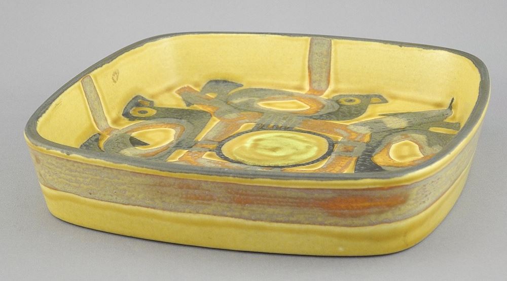 LOT 332 Royal Copenhagen Fajance Square Dish , Design: Johanne Gerber, 6 5/8"h. Estimate: $50 - $60 Sold For: $110 Auction Date: Tuesday, July 15 2025 at 4:00 PM