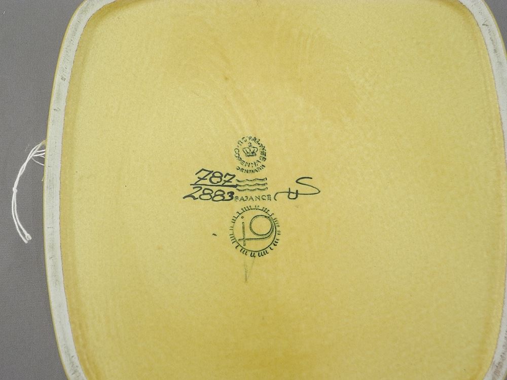 LOT 332 Royal Copenhagen Fajance Square Dish , Design: Johanne Gerber, 6 5/8"h. Estimate: $50 - $60 Sold For: $110 Auction Date: Tuesday, July 15 2025 at 4:00 PM
