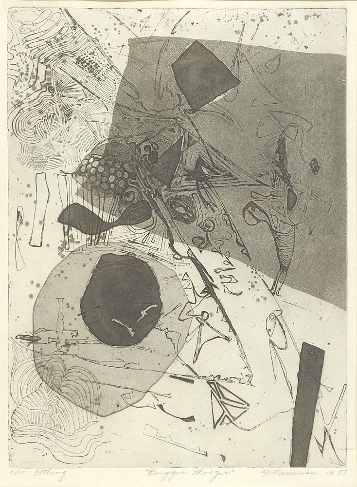 LOT 273 Etching signed F.Faminou 1977, 12 1/2 x 9 1/4", "Buggir Woogie". Estimate: $50 - $60 Sold For: $60 Auction Date: Tuesday, July 15 2025 at 4:00 PM