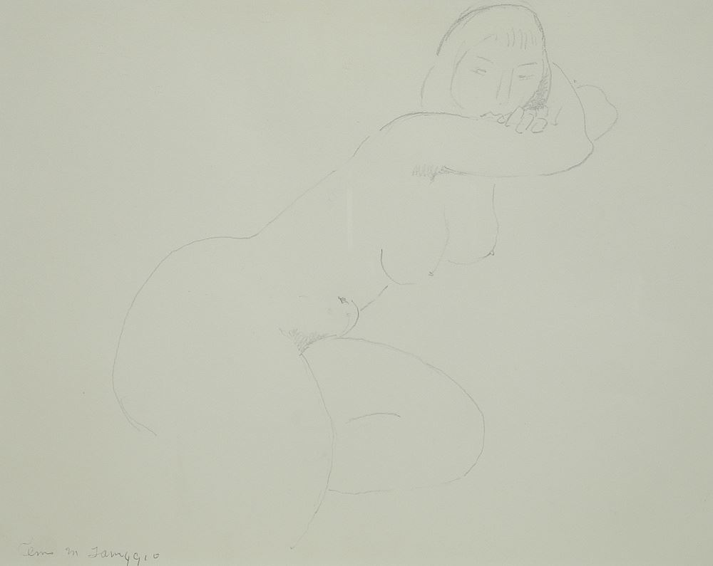 Drawing signed Tamaggio, 10 1/4 x 13 1/8", "Nude Study".