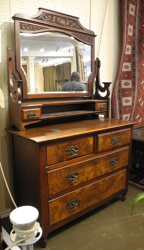 Late 19th C. Walnut Dresser with Plate Glass Mirror, 70"h.