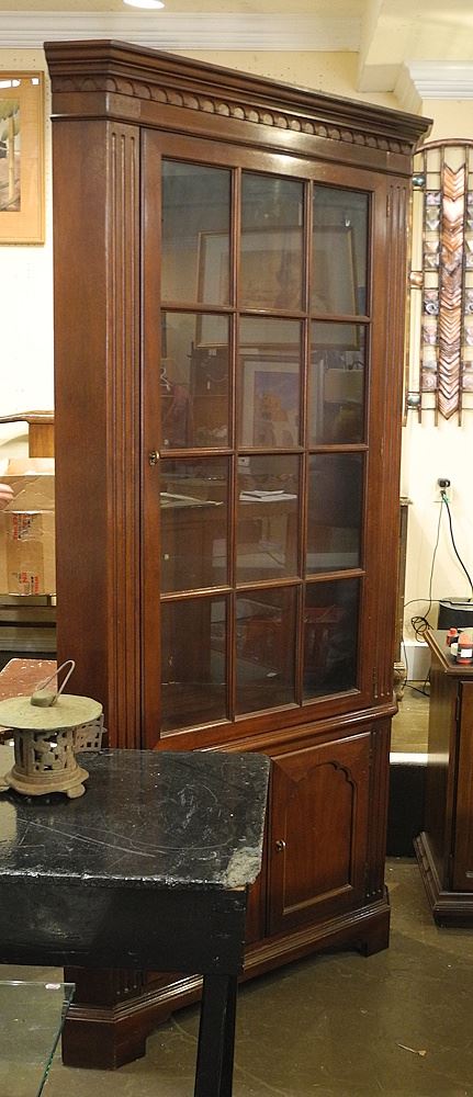 LOT 315 Cherrywood Corner Cabinet, 84"h. Estimate: $50 - $70 Sold For: $25 Auction Date: Tuesday, July 15 2025 at 4:00 PM