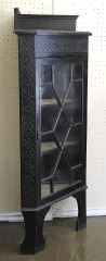 LOT 206 Ebonized Wood Corner Cabinet with Blind Fretwork Raised on Legs, 51"h. Estimate: $50 - $100 Sold For: $140 Auction Date: Tuesday, July 15 2025 at 4:00 PM