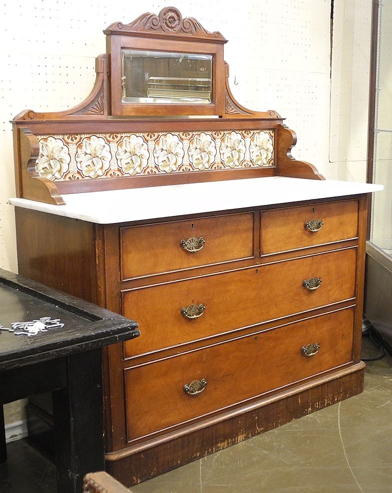 19th C. 4 Drawer Washstand with Marble Top & Mirror.