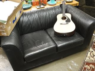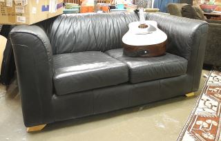 LOT 223 English Black Leather Loveseat. Estimate: $100 - $200 Sold For: $70 Auction Date: Tuesday, July 15 2025 at 4:00 PM
