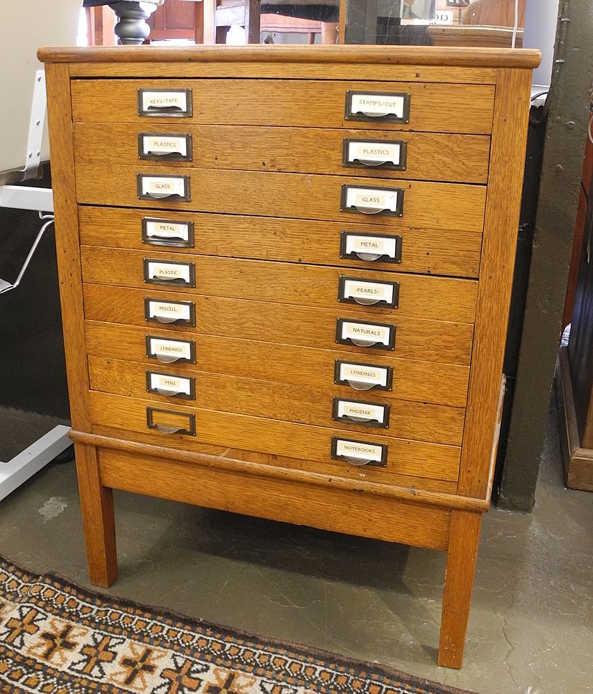 LOT 56 Vintage Oak Nine Drawer Chest. Estimate: $150 - $300 Sold For: $425 Auction Date: Tuesday, July 15 2025 at 4:00 PM