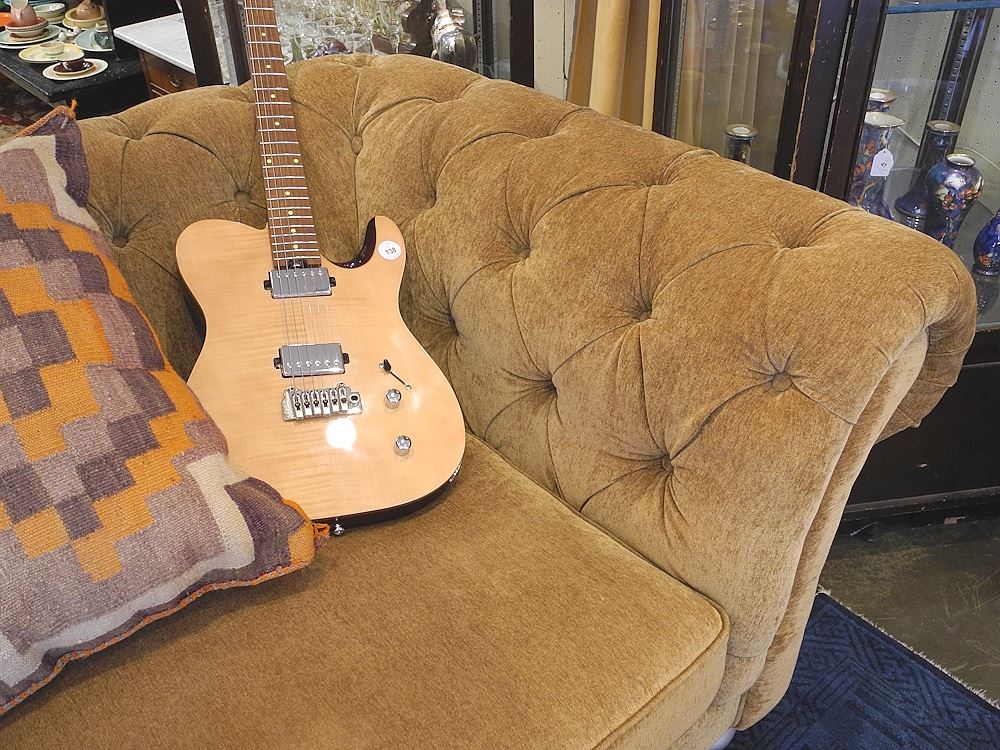 LOT 44 Contemporary Straw Coloured Chesterfield (water damage noted). Estimate: $60 - $100 Sold For: $50 Auction Date: Tuesday, July 15 2025 at 4:00 PM