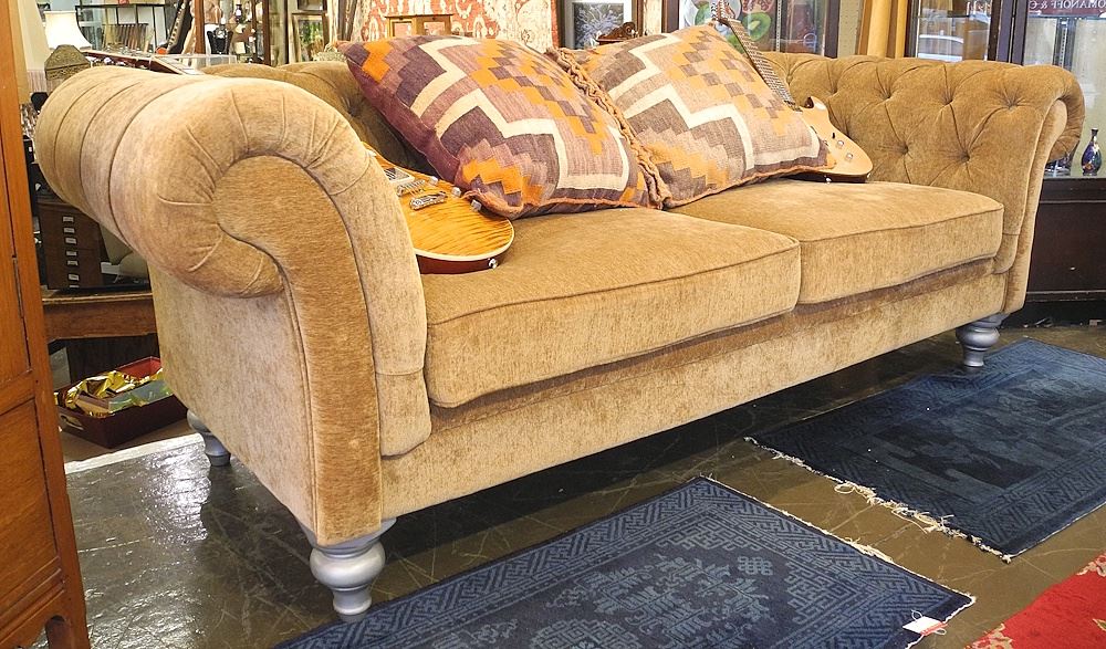 Contemporary Straw Coloured Chesterfield (water damage noted).
