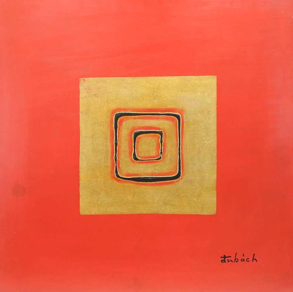LOT 271 Lacquer Panel signed Jubach, 23 5/8 x 23 5/8", "Gold Over Scarlet". Estimate: $60 - $100 Sold For: $70 Auction Date: Tuesday, July 15 2025 at 4:00 PM