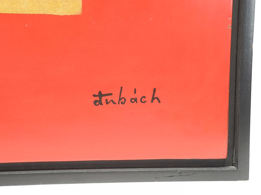 Lacquer Panel signed Jubach, 23 5/8 x 23 5/8", "Gold Over Scarlet".