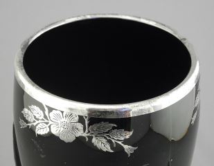 Duncan & Miller Silver Overlay Rocket Vase, 9"h.