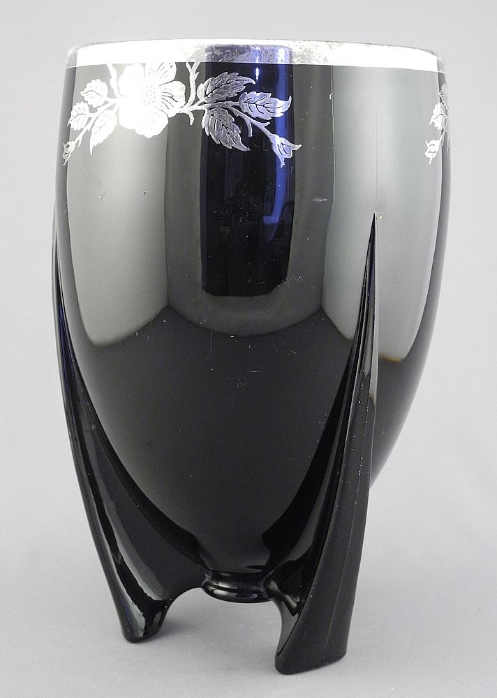 LOT 361 Duncan & Miller Silver Overlay Rocket Vase, 9"h. Estimate: $50 - $60 Sold For: $35 Auction Date: Tuesday, July 15 2025 at 4:00 PM