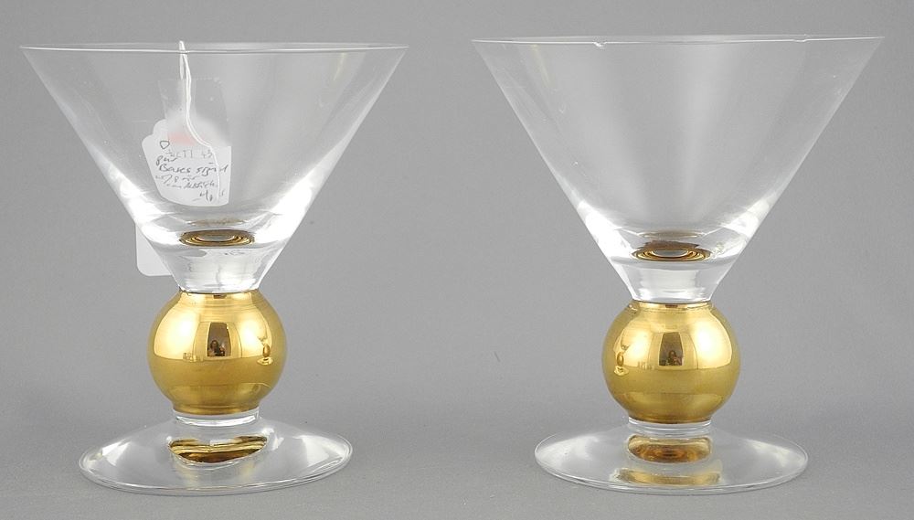 Pair of Orrefors "Nobel Prize" Martini Glasses (4 3/4"h) & Pair of Candlesticks, 2 1/2"h.