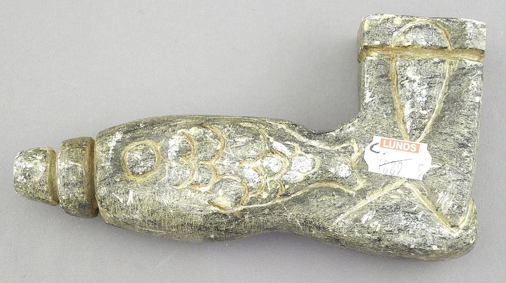 Carved Stone Pipe, 6"L.