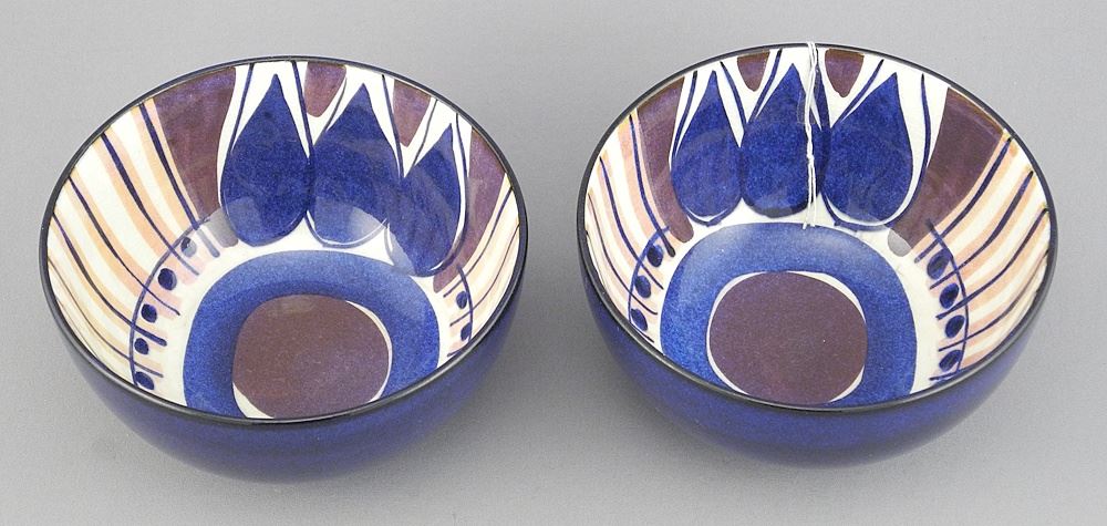 Pair of Royal Copenhagen Aluminia Bowls, Design: Ingea Lisa Koefod, 4 3/8" Diameter.