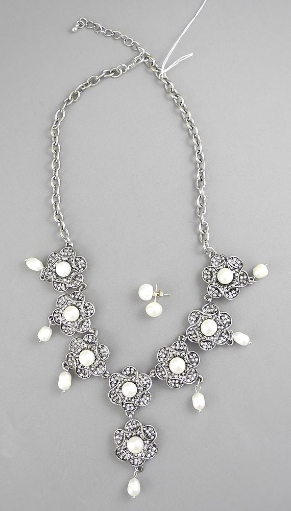 LOT 114 White Metal Freshwater Pearl & Austrian Crystal Necklace (20"L) & 925 Pearl Earrings. Estimate: $60 - $100 Sold For: $60 Auction Date: Tuesday, July 15 2025 at 4:00 PM