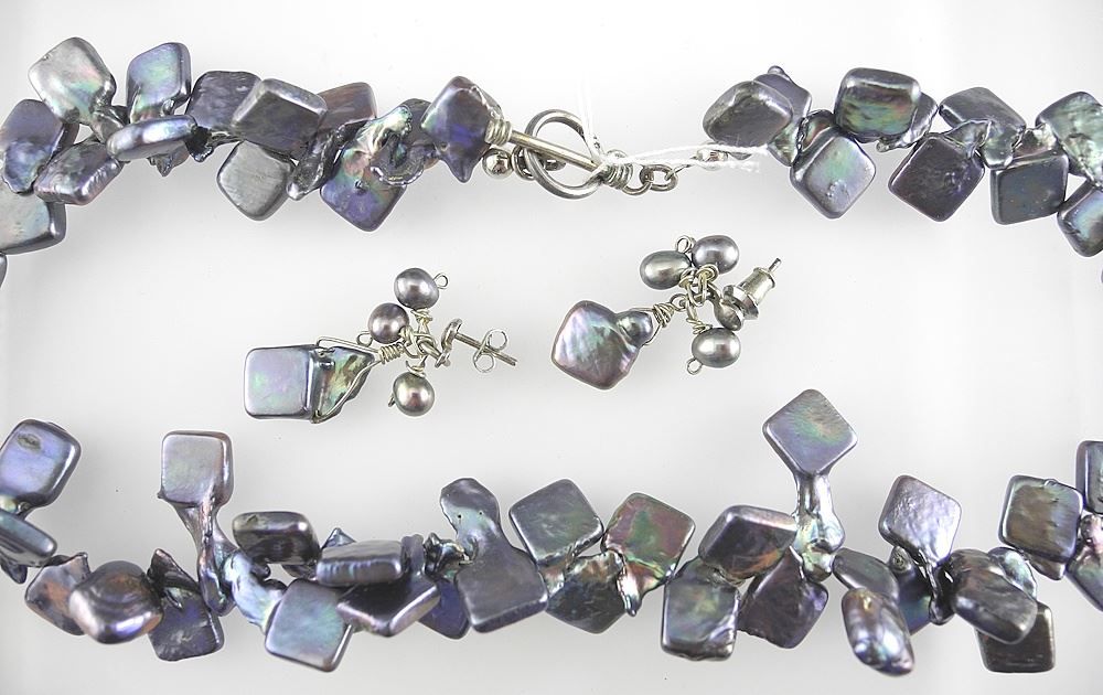 Keshi Pearl Necklace (16"L) & Earrings with 925 Clasps.