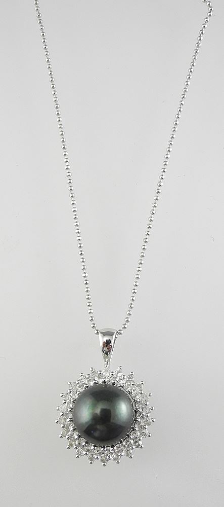 Black Pearl & Sterling (marked) Pendant on Sterling (marked) Chain, 18"L, 4.5g.