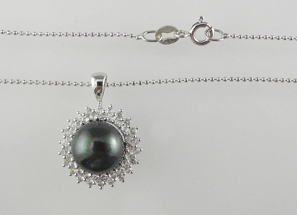 Black Pearl & Sterling (marked) Pendant on Sterling (marked) Chain, 18"L, 4.5g.