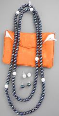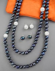 Iridescent Freshwater Pearl & Pave Sphere Necklace (46"L) & Two Pair Similar Earrings 9incl. po