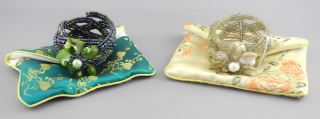 LOT 174 Two Indonesian Mother of Pearl & Pearl Beaded Bracelets, 2 5/8"w with Pouches. Estimate: $60 - $70 Auction Date: Tuesday, July 15 2025 at 4:00 PM