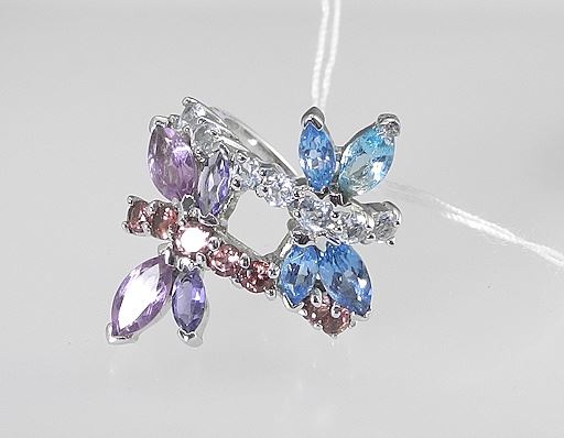LOT 171 Sterling (marked 925) Rhodolite/ Garnet/Topaz Butterfly Ring, Size 6 1/2, 7.1g. Estimate: $60 - $100 Sold For: $40 Auction Date: Tuesday, July 15 2025 at 4:00 PM