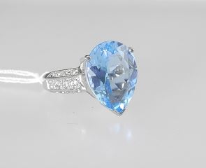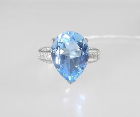 Sterling (marked 925) Swiss Blue Topaz Ring, Size 7, 6.7g.