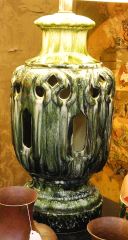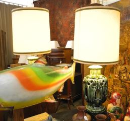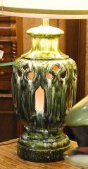 Pair of 1960's Green Glazed Ceramic Table Lamps, TH 42 1/2".