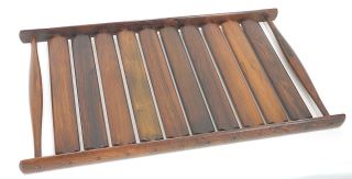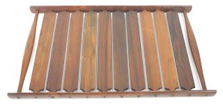 LOT 236 Dansk Jens Quistgaard Design Rare Woods Slatted Tray, 25"w. Estimate: $600 - $900 Sold For: $600 Auction Date: Tuesday, July 15 2025 at 4:00 PM