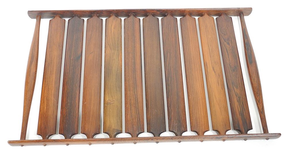 LOT 236 Dansk Jens Quistgaard Design Rare Woods Slatted Tray, 25"w. Estimate: $600 - $900 Sold For: $600 Auction Date: Tuesday, July 15 2025 at 4:00 PM