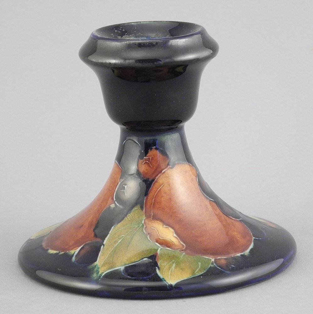 LOT 346 One Moorcroft Pomegranate Candlestick, 3 1/4"h. Estimate: $50 - $60 Auction Date: Tuesday, July 15 2025 at 4:00 PM