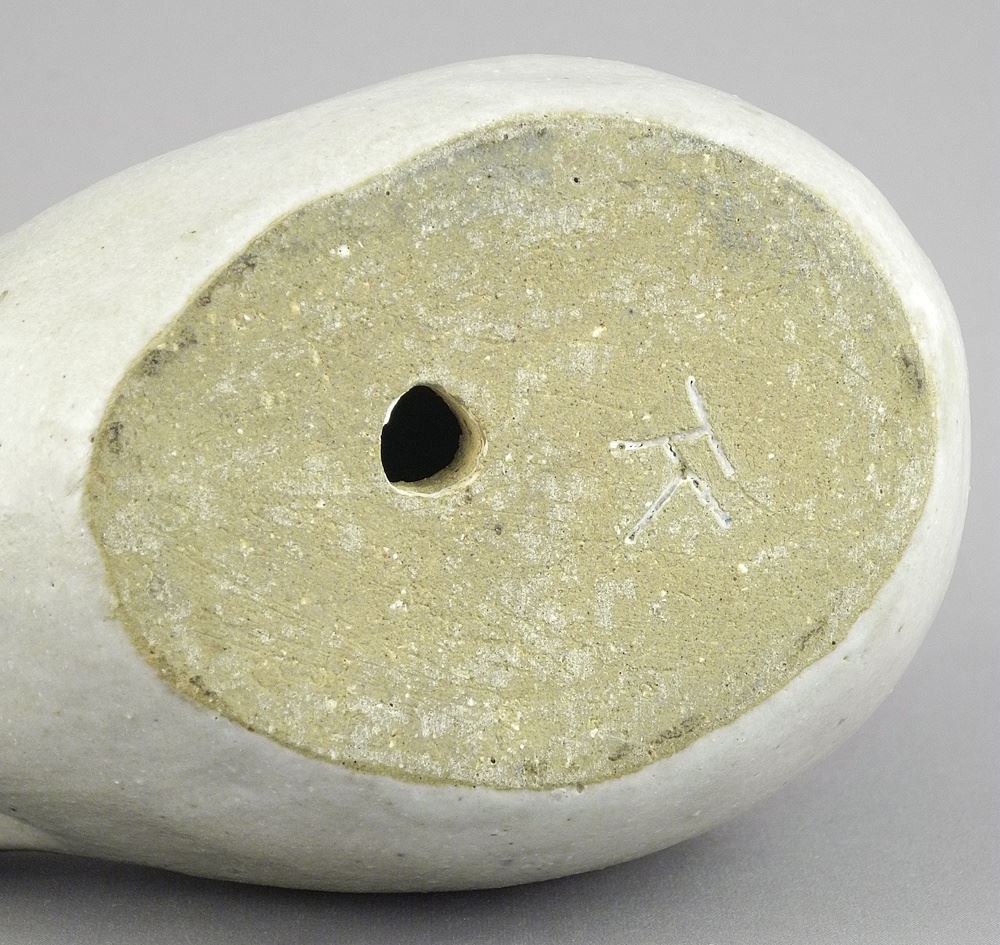 Stoneware Sculpture Monogrammed TK (Thomas Kakinuma), 6"h, "Bird with Yellow Beak".
