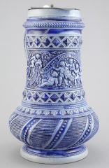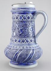 German Salt Glazed Jug with English Pewter Cap, 10"h.